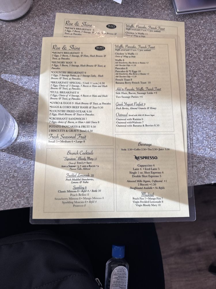 “ Wow, couldn't have been happier. Mom's was packed for breakfast/lunch, but a waitress got us quickly to a table. My husband had the Southern Omelette and I had the Western Omelette. Both were so delicious. The hash browns were the best I've ever had. Crispy on the outside, moist on the side. We'll definitely be back. ”